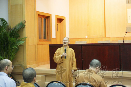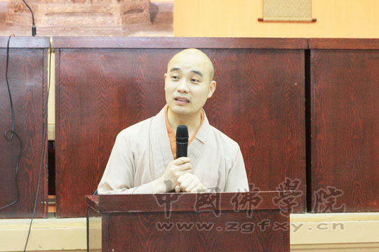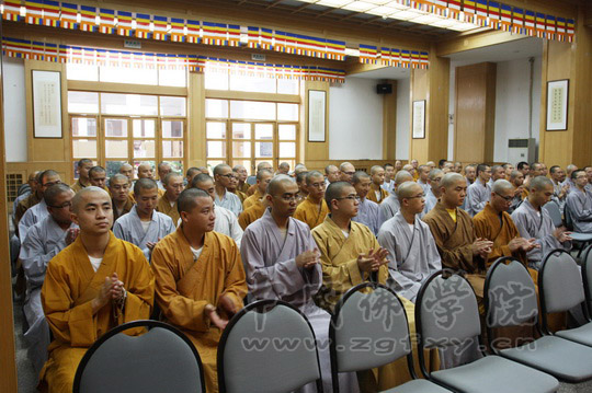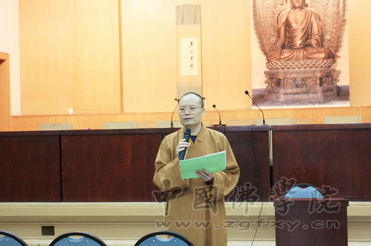 28日下午,我院召开了新生见面会。副院长兼教务长宗性法师做了精彩的开示,教务处主任理证法师向同学们介绍了新生入学教育的安排,教务处副主任永兴法师介绍了2011级新生的课程设置及宗教生活的修学安排,见面会由教务处副主任觉灯法师主持。