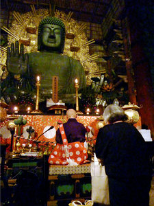 奈良东大寺13日在大佛殿举行佛事为东日本大地震中遇难的人们祈祷冥福,并祝愿灾区复兴。
