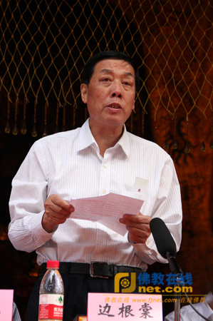 边根棠局长在仪式上发表讲话,他表示《文殊圣典》编辑、汇印圆满成功又为佛教经典中增添了一法宝。《文殊圣典》供奉在作为文殊菩萨道场的五台山寺院更是因缘殊胜。