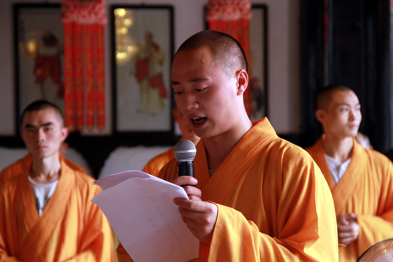 文殊院唯那师宣读第十届全球佛子祈祷和平,祈福众生千亿圣号大念诵回向文
