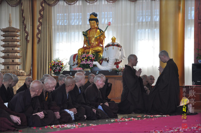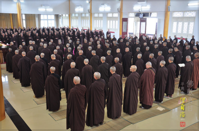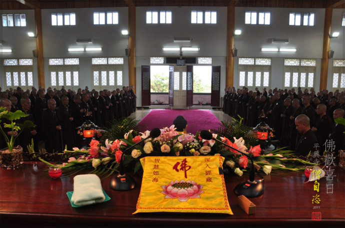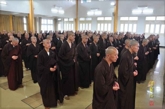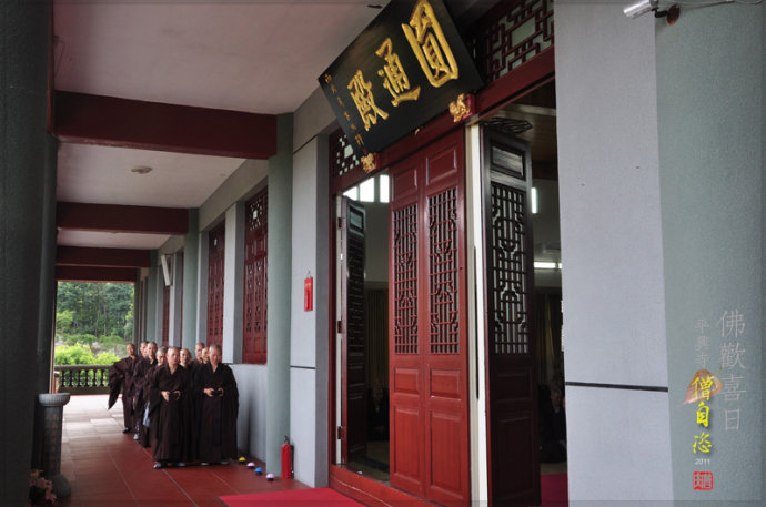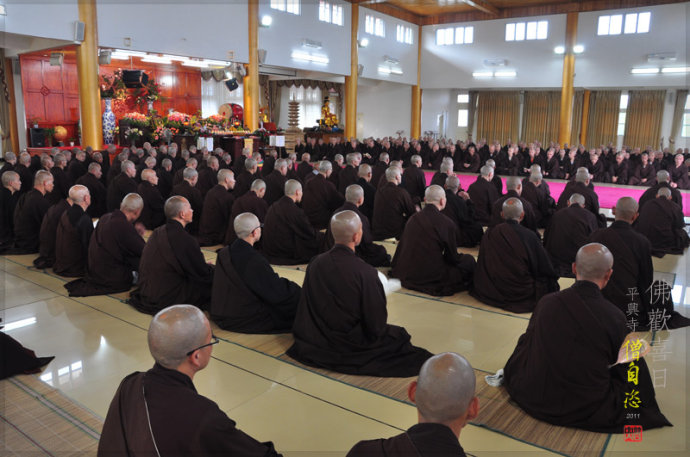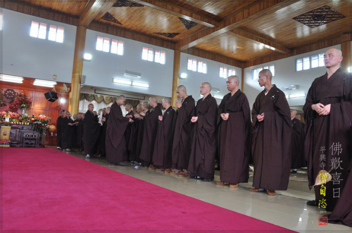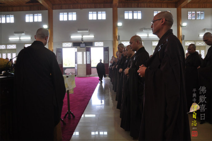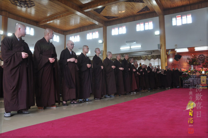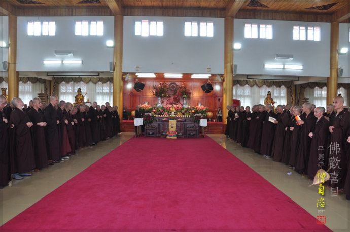 2011年农历七月十五日下午四时,平兴寺僧众于圆通殿举行结夏安居圆满僧自恣仪式。