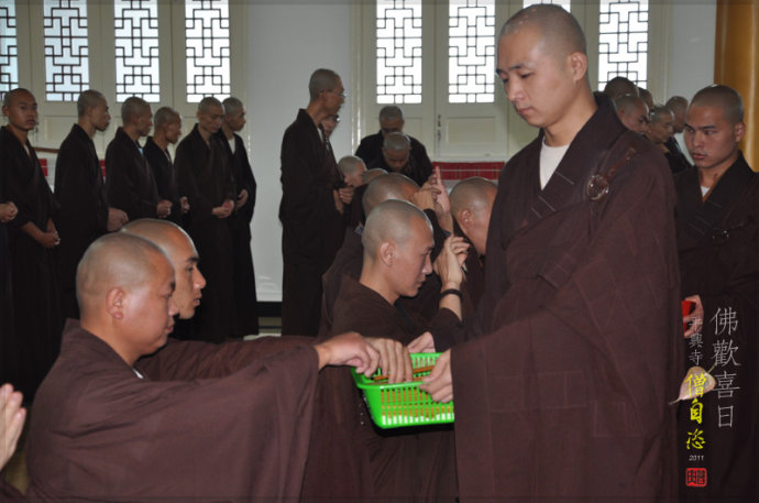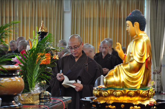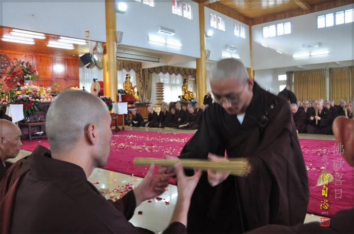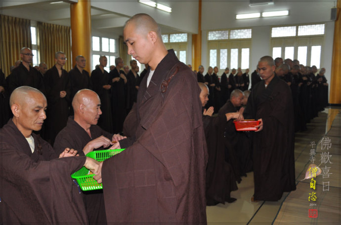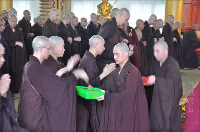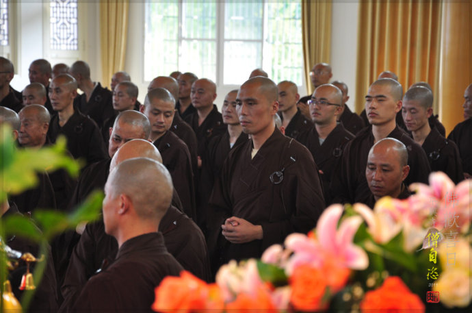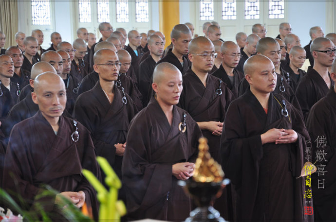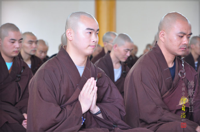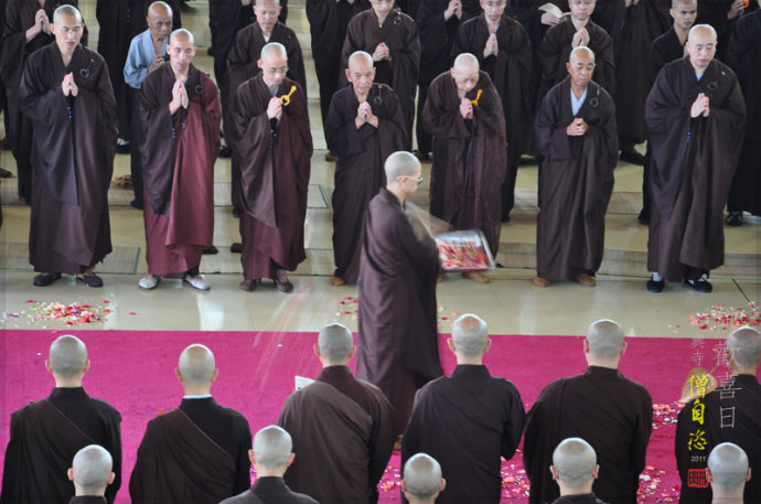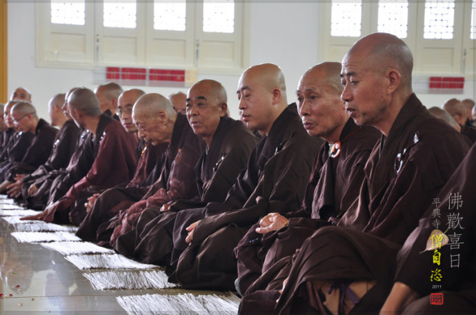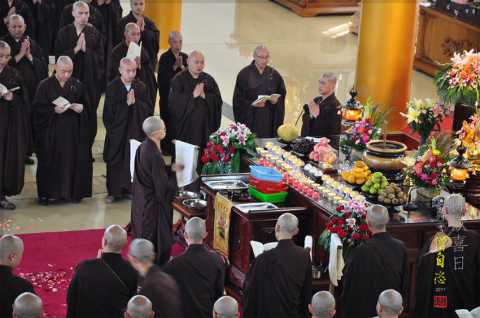 2011年农历七月十五日下午四时,平兴寺僧众于圆通殿举行结夏安居圆满僧自恣仪式。