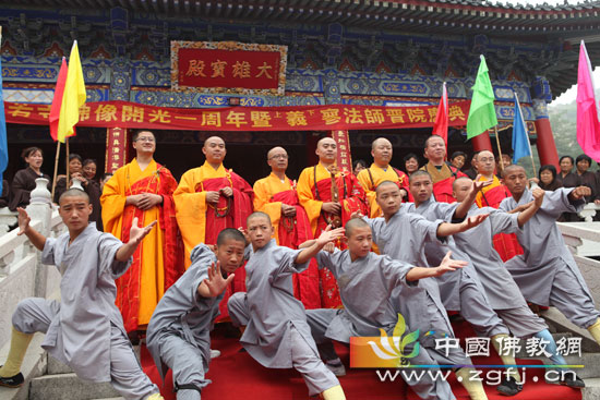 出席本次庆典的有:上义下寥法师的恩师上妙下生法师、山西省灵石县佛教协会会长上圣下翔法师、太原隆盛禅寺住持上霞下如法师、辽宁省葫芦岛市连山区大兴乡龙泉禅寺住持上正下定法师、茶山般若寺常住妙生法师、本禅法师、茶山集团董事长崔进光大护法、少林寺武僧队长释延君与众多少林僧众及众多大德。