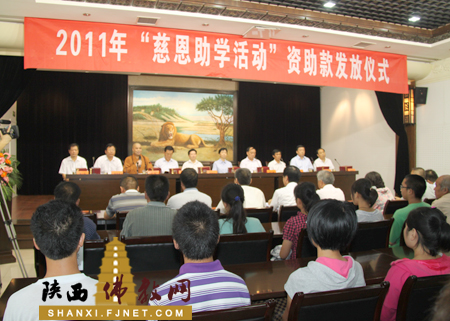 2011年8月30日上午,2011年“慈恩助学活动”资助款发放仪式在西安大慈恩寺举行,125名来自困难家庭的大学生共获资助款50万元。省委副书记王侠,省委副秘书长杨志刚,省委统战部副部长、省宗教事务局局长徐自立,省教育厅副厅长张雄强,市委副书记董军,市委常委、市委统战部部长张雷、副部长常焕良,西安市教育局副巡视员董三原,中国佛教协会副会长、省佛教协会会长、大慈恩寺方丈增勤法师等出席仪式,并向受助学生发放资助款。市宗教局局长贺维海主持发放仪式。