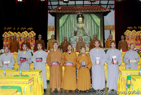 其间,果清法师宣布上学期获奖同学名单,并请各位法师为获奖同学颁发奖品。