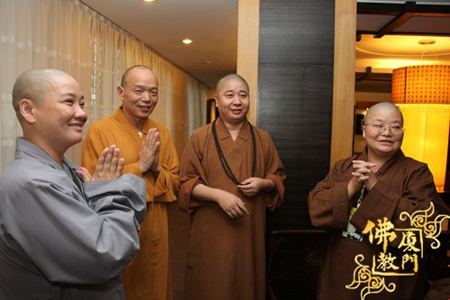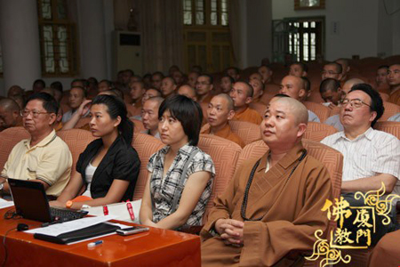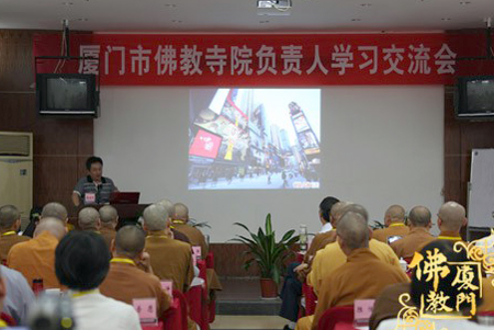 2011年9月15日上午,福建厦门市佛教寺院负责人季度学习交流会在南普陀寺讲堂拉开帷幕。厦门市民宗局蔡永华副局长,海沧区民宗局沈瑶局长,市民宗局黄镇辉处长,黄斯坚调研员,厦门市佛教协会会长、南普陀寺方丈则悟法师,厦门市佛教协会常务副会长定恒法师,市佛协副会长界象法师、法源法师、法云法师,秘书长净心法师,市佛协副秘书长、海沧区佛协会长忠明法师,市佛协副秘书长、思明区佛协会长普端法师,湖里区佛协会长明德法师,市佛协副秘书长仁慈法师、世澄法师、竺冰法师、传明法师、超波法师、增全民,及各寺院主要负责人,厦门大学廖泉文教授等参加了第一天的会议。在则悟法师的主持下,廖泉文教授首先作了现代管理学知识的讲座。