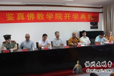 2011年9月1日上午9点,鉴真佛教学院秋季开学典礼在国歌声中开幕;扬州市民族宗教事务局局长陈云观、南京海鑫集团董事长姜杏树居士应邀出席了开学典礼。