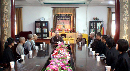 2011年9月13日,台湾玉佛寺住持果如法师带领法师、居士等一行20人朝礼安徽省潜山县三祖禅寺,受到三祖禅寺住持宽容法师在客堂的热情接待。