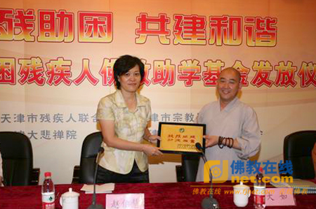 2011年8月31日上午10时,天津市大悲禅院贫困残疾人佛教助学基金发放仪式在市残联六楼会议室举行。