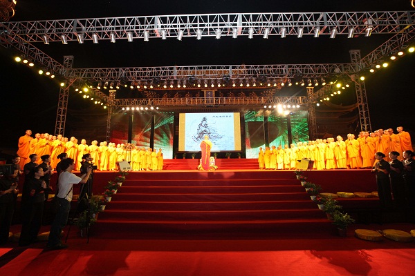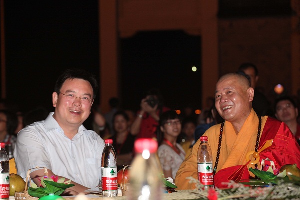 苏州市委常委、市统战部长周向群女士,市人大常委会副主任金明先生,园区管委会副书记方文浜先生、市民族宗教事务局局长金建立先生、市旅游局局长沈文娟女士,阳澄湖半岛开发建设管理办公室主任蒋浩忠先生,园区管委会社会事业局局长华雪兴先生,唯亭镇镇长朱伟兴先生,江苏省佛教协会副会长、苏州寒山寺、重元寺方丈秋爽法师,以及重元寺两序大众,另外还有来自全国各地的法师、居士、艺术家、企业家等共两千余人参加了本次晚会。