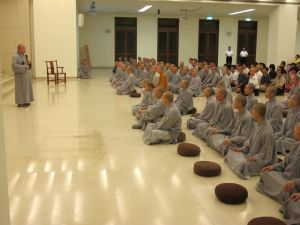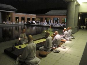 2011年9月12日,农历八月十五,法鼓山僧团及佛教学院师生在世界佛教教育园区祈愿观音殿前举办中秋月光禅会。法鼓山方丈果东法师、副住持果晖法师及台湾中华佛研所所长果镜法师等人亦一同参与当晚赏月茗茶过秋节的活动。