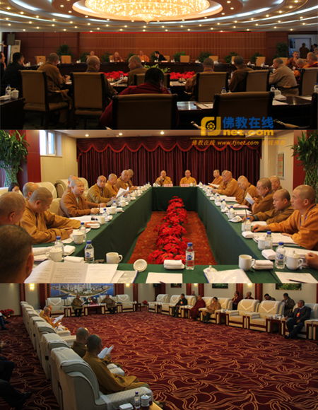 学诚法师及王健秘书长分别向常务理事会做了换届以来的工作报告及财务报告。下午,常务理事会还就《藏传佛教寺庙主要教职任职办法(草案)》、《南传佛教寺院住持任职办法(草案)》及《全国汉传佛教寺院传授三坛大戒管理办法(草案)》做了分组讨论。经过热烈的讨论后,最后大会决议通过了这三个办法。