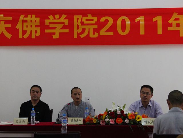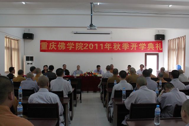 2011年9月1日,重庆佛学院“2011年秋季开学典礼”在佛学院新校舍隆重举行。重庆市委统战部民宗处何友兵副处长,市民宗委宗教三处史金山调研员,重庆佛教协会教务主任张和平,重庆华岩寺方丈、重庆佛学院常务副院长道坚法师,重庆佛学院教务长朗光法师,重庆佛学院综合办公室主任熊霖等领导出席了本次毕业庆典。出席本次毕业典礼的领导分别在毕业典礼上作了重要讲话,典礼由重庆佛学院教务长朗光法师主持。
