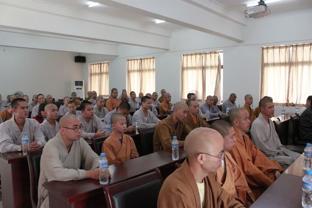 道坚法师在开学典礼上对党和政府以及宗教局对佛教教育一直以来的支持帮助表示感谢,希望各位法师在新的一学期里,落实教学大纲,进行系统化的教学,完善教学管理体系,并介绍了本届佛学院招生情况。