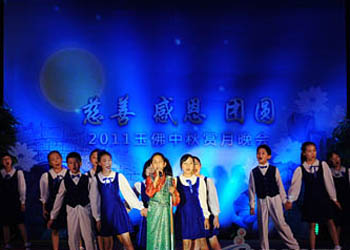 为感恩社会和激励为慈善福利事业多作贡献的热情,玉佛寺在觉醒大和尚积极倡导下举办感恩慈善中秋晚会。晚会还邀请了社会名人和演艺界的名人共同参与,包括钱文忠、陈奇、曹雷、刘家祯、段皑皑、乌达木、陈醇等,玉佛寺觉群梵乐团也参加了部分节目的演出。整台晚会气氛热烈、精彩纷呈,最后在玉佛寺法师《爱的力量》大合唱歌声中圆满落幕。