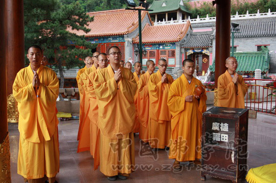 2011年9月1日上午,我院2011级新生在教务处副主任觉灯法师的带领下前往灵光寺朝拜佛牙舍利。