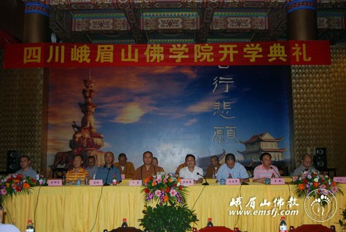 2011年9月5日上午,四川峨眉山佛学院2011年秋季开学典礼在大佛禅院隆重举行。四川省宗教局一处处长周晓鹰,乐山市宗教局局长高鹏,峨眉山市宗教局局长吴仲文,峨眉山——乐山大佛景区管委会宗教局局长李黔;四川省佛教协会会长、四川峨眉山佛学院院长永寿法师,四川省佛教协会秘书长王立军,峨眉山佛教协会副会长传智法师、心定法师、果正法师、演法法师、宏开法师,峨眉山佛教协会副会长、四川峨眉山佛学院副院长满霖法师。佛学院全体师生参加了开学典礼。