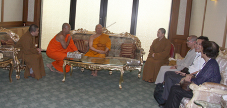 摩诃朱拉隆功大学达磨孔莎瞻校长并在此间与杭州佛学院参访团会晤。经过商讨和交流,双方在互派留学生方面达成共识,希望能多方面多层次的开展合作,共同推动佛教事业的发展。摩诃朱拉隆功大学还邀请杭州佛学院出席国际佛教学术会议,并在会议之间展出杭州佛学院艺术的作品。