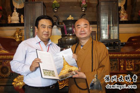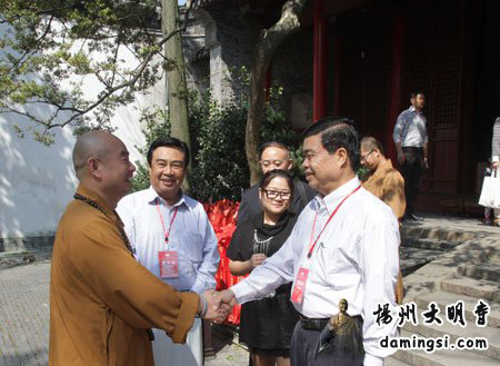 2011年9月25日上午10时,缅甸仰光市市长、城市发展委员会主席U HLE MYINT(中文名:吴拉敏)一行到扬州大明寺参访交流,受到江苏省扬州市民宗局陈云观局长,朱建明副局长,大明寺方丈能修法师的亲切接见。