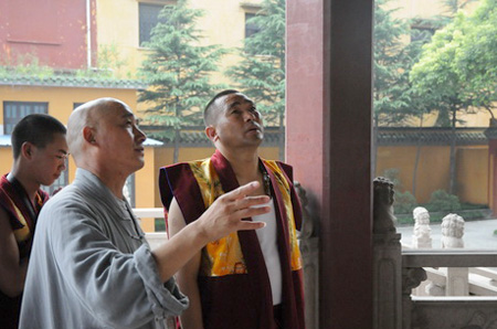 2011年9月2日上午,东宝·仲巴仁波切到江苏扬州大明寺参观访问。