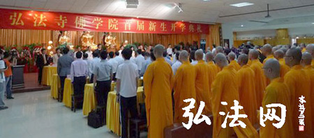 2011年9月29日上午10点,弘法寺佛学院开学典礼在弘法寺经堂隆重举行。国家宗教事务局、广东省政府、广东省委统战部、广东省民宗委、海南省委统战部、湖北省民宗委、深圳市政府、深圳大学等领导及海内外学者嘉宾70多人出席典礼。典礼由深圳市统战部副部长、深圳市民族宗教局局长姚任主持。典礼由深圳市统战部副部长、深圳市民族宗教局局长姚任主持。