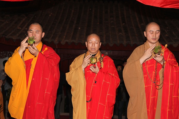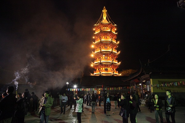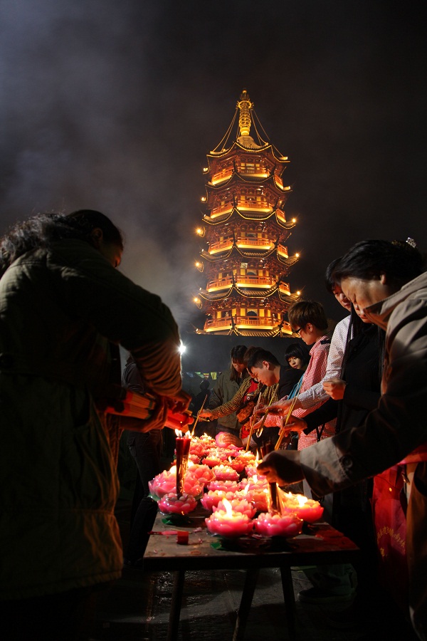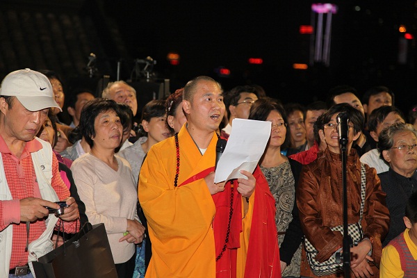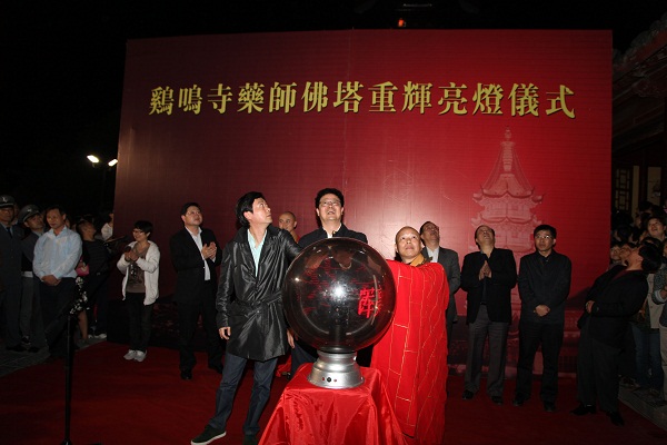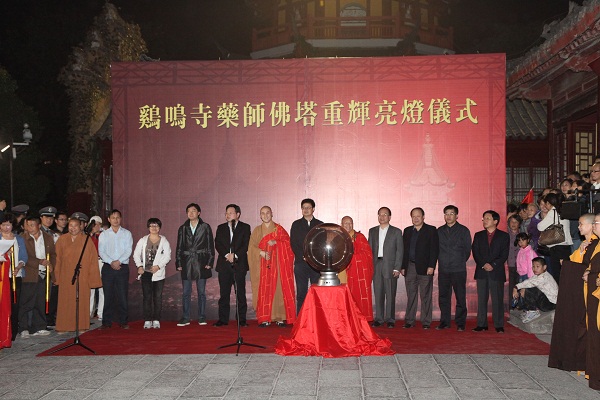 2011年10月14日晚八点,“南京古鸡鸣寺药师佛塔重辉亮灯仪式”在鸡鸣寺铜佛殿前隆重举行。