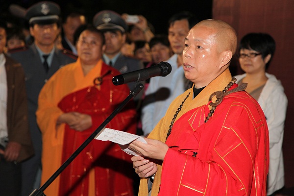 朱淮宁局长在讲话中指出,鸡鸣寺药师佛塔作为南京佛教以及南京城市的重要标志性建筑之一,在南京人民的心目中有着重要的地位,药师佛塔的维修工程是今年市政府的重要民生工程之一。朱局长在讲话中对市委市政府以及各级领导在药师佛塔救灾、维修过程中的关心与指导表达了深深的谢意,并对各施工单位的尽心尽责表达了诚挚的感谢。心澄法师最后为大众做了重要开示,并祝愿正法久住,国泰民安。