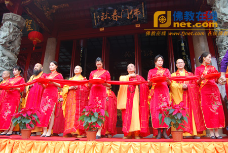 佛像开光法会于大雄宝殿举行,两岸诸山长老共同为佛像开光法会主法,并为寺院落成剪彩。