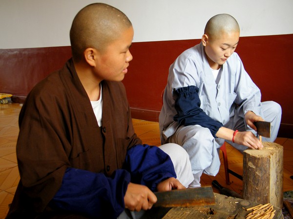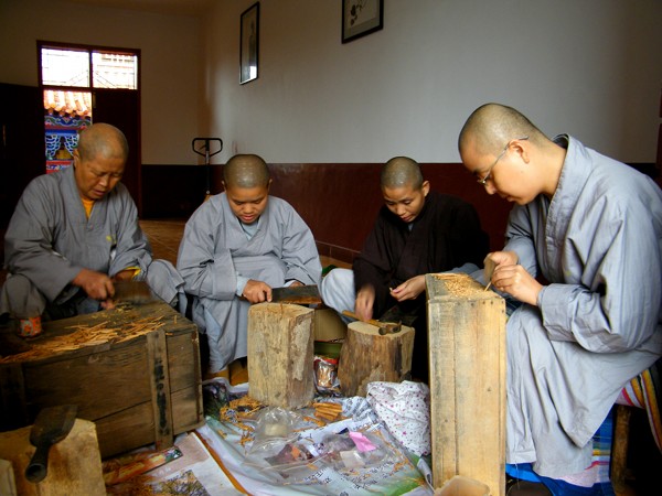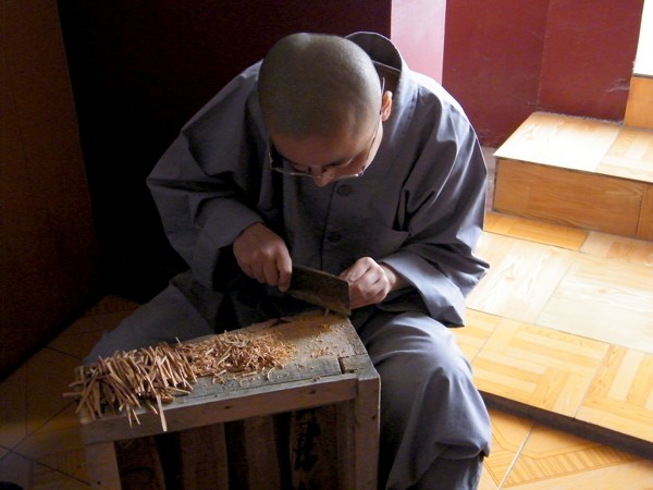 国庆期间,东山古寺极乐苑诸位法师透过外在有形的种种动作,以此修行供养,无非不是来启发内在本身就具足的佛性。 她们通过坚持不懈、不畏艰苦、把大批量的大檀香木,用斧刀、柴刀等磨成一根小小的非常漂亮的香来供养十方法界诸佛菩萨。就是用来具足成就福德的资粮,减少修行过程的障碍,也是一种自利利他的方便和有益的最佳法门。