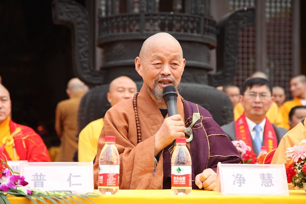 净慧长老远道而来,首先代表河北省佛教协会对莲花寺大殿落成暨佛像开光法会表示热烈的祝贺。并希望莲花古寺高举爱国爱教旗帜,以古德先贤为榜样,发大菩提心,将信仰落实于生活,将修行落实于当下,把寺院建设好,管理好。