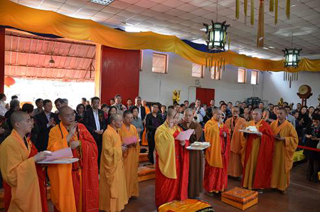 上午10点30分,在觉醒法师的主持下,慧莲法师、慧平法师一同为千手千眼琉璃观音举行开光法会,法会现场庄严隆重,数百位居士共同参与了此次法会。