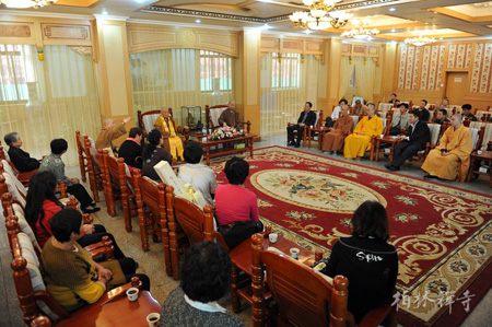 净慧长老在指月楼会客厅与性空长老及随行人员亲切座谈