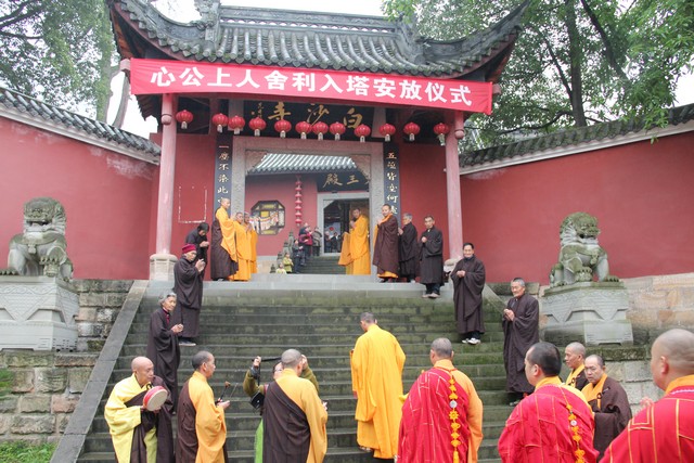 2011年10月27日,农历十月初一,也是华岩寺心公上人九十三周年诞辰。重庆市巴南区白沙寺隆重举行“心公上人舍利入塔安放仪式”,参加本次仪式的有心公上人的弟子,华岩寺方丈道坚大和尚、白沙寺住持朗光法师、朗树法师、朗观法师、朗慧法师、朗性法师、朗澜法师等师父,以及心公上人的皈依弟子等。上人舍利由白沙寺住持朗光法师亲手放入舍利塔中,本次入塔安放了心公上人3粒舍利子,其中骨舍利一粒。盛装舍利的水晶宝塔晶莹剔透,庄严无比,似乎还在传讲着甚深的佛法,这无不令人生起对佛法的信心。