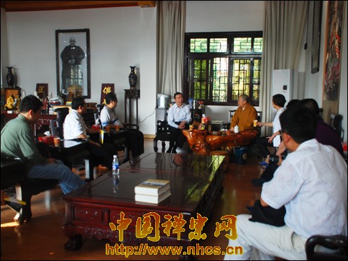 随后,郑院长一行在传正大和尚的邀请下到方丈室进行了座谈交流。传正大和尚向郑院长赠送了《曹溪通志》、《拈花笑处》等书作为纪念。