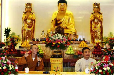 贤益法师与林启泰老师主持讲座,探讨“生命的意义”。