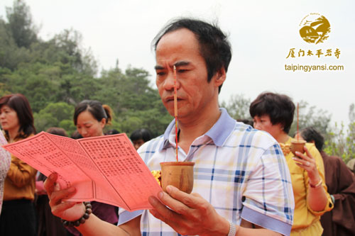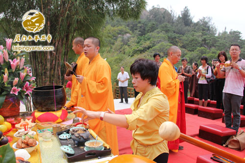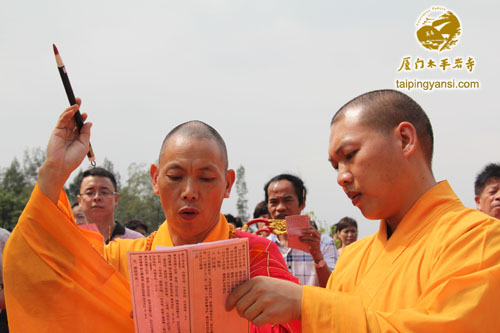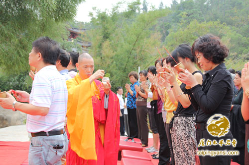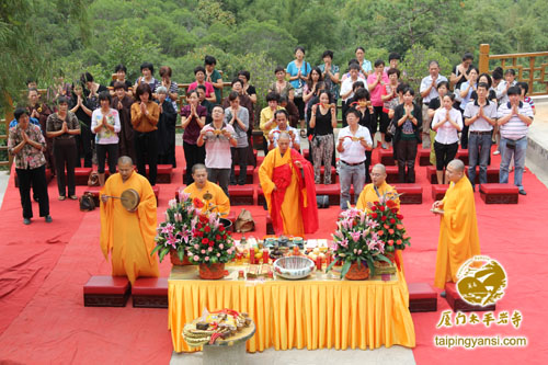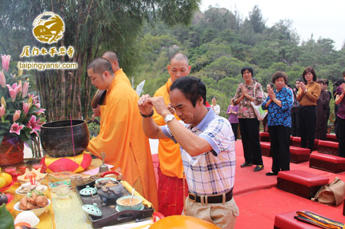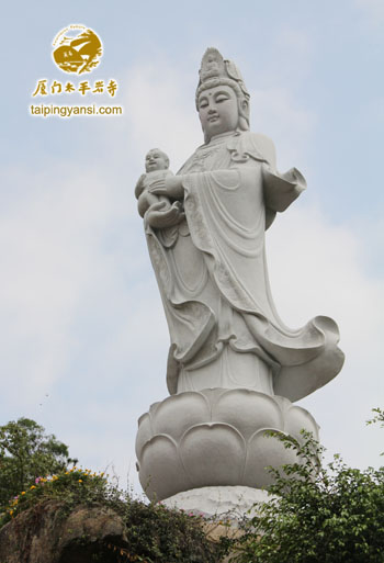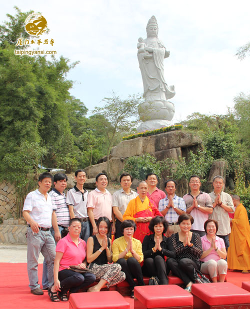2011年10月15日,是日,云淡风轻,秋高气爽,厦门太平岩寺住持世澄大和尚率常住两序大众,功德檀越苏晋火、吴丽明贤伉俪,赵国荣、吴淑青贤伉俪,曾文彬、王春燕贤伉俪与诸护法居士恭迎奉请石雕送子观音圣像安座本寺灵山鳌头。时逢九月十九观音菩萨出家日,庄严道场、梵呗声和、佛乐齐鸣、共敷莲台。于此殊胜时日,适值因缘成就同共发心毕竟善举。仰愿,菩萨慈悲护佑群灵、普渡众生!