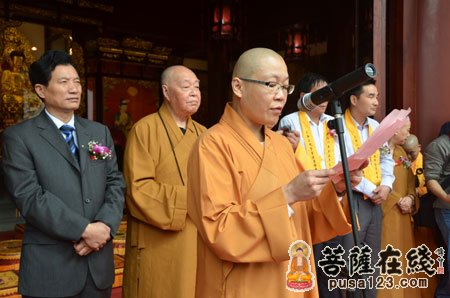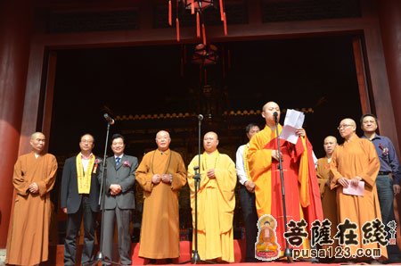 仪式由文渊法师住持,他对有关领导及大德们的到来及对觉醒大和尚多年来对三观堂的修复工作的支持表示感谢,为三观堂建设做出贡献的护法居士们致以深深的谢意。