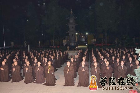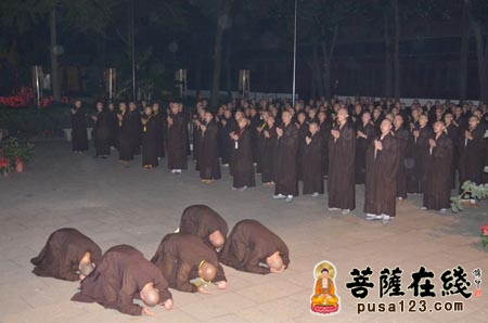 新戒弟子顶礼膜拜觉醒大和尚(图片来源:菩萨在线)