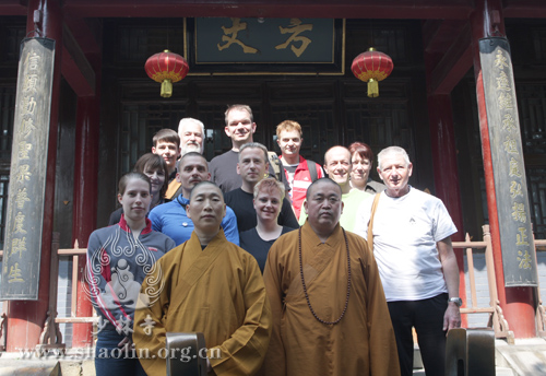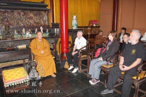 2011年10月18日中午,德国少林文化中心的学员在永传法师的带领下,一行13人远赴千里,来到少林寺归山朝拜,受到释永信方丈的热情接待。