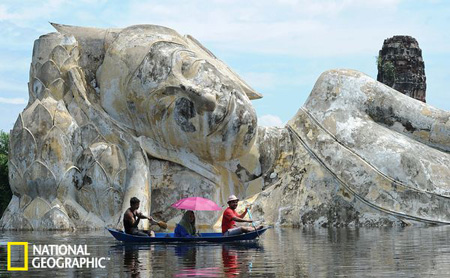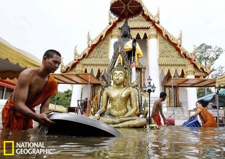 受热带季风影响,从2011年7月底开始,泰国中部、北部和东北部持续出现大范围降水,引发洪水、泥石流、山体滑坡等灾害。泰国众多寺庙在水灾中岌岌可危。泰国古城大城府一座被洪水淹没的寺庙,僧人们正在搜集个人物品。大城府建于14世纪,被联合国列为世界遗产。联合国表示,一周多以来,大城府一直泡在洪水中。联合国将派遣代表团前往大城府,调查破坏情况。英国媒体报道,这是泰国50年来遭受的最严重洪灾,至少已造成224人死亡。