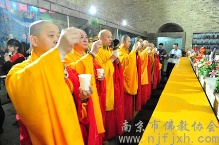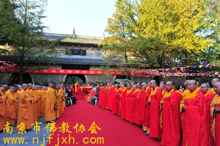 2011年10月18日下午,江苏南京灵谷寺佛光普照、彩旗猎猎,“海峡两岸纪念辛亥革命一百周年祈福超荐法会”在灵谷寺隆重举行启建盛典。此次法会由南京市佛教协会、台北市佛教会、金门县佛教会共同发起。