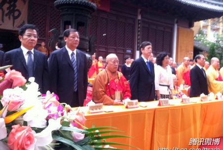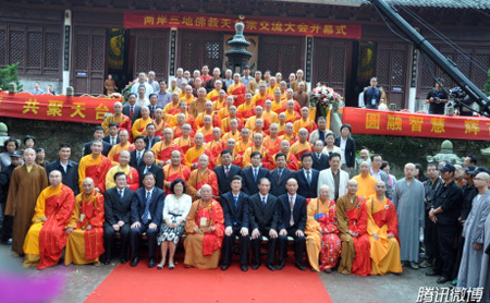 2011年10月11日上午,主题为“同宗同源,共聚天台,圆融智慧,辉古腾今”的两岸三地佛教天台宗交流大会开幕式在浙江天台山国清寺大雄宝殿前隆重开幕。中国佛教协会会长传印长老,浙江省政协副主席、统战部长汤黎路,国家宗教局外事司司长郭伟,国家宗教局一司副司长裴飚等领导,及中国佛教协会咨议委员会副主席、青岛湛山寺方丈明哲长老,中国佛教协会副会长、上海玉佛寺方丈觉醒法师,中国佛教协会副会长、北京大学南亚语系教授湛如法师,中国佛教协会副会长、浙江省佛教协会名誉会长道慈法师,浙江省佛教协会会长怡藏法师,黑龙江省佛教协会会长、哈尔滨极乐寺方丈静波法师,中国佛教协会秘书长王健,台湾僧伽林教育院院长法藏法师,香港西方寺方丈宽运法师,香港观宗寺方丈宏明法师等佛教界诸山长老出席开幕式。