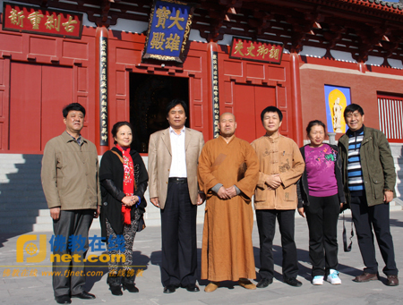 曾理事长一行在参观竹林寺的大雄宝殿、法堂后,对竹林寺的雄伟建筑深表震撼,对五台山将古刹道场重兴的如此宏伟表示赞叹。最后,妙江法师与曾春朝理事长一行在大雄宝殿前合影留念。