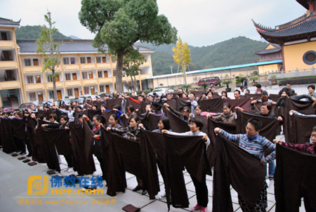 2011年11月18日至20日,浙江省宁波慈云佛学院为来自上海、宁波、广州、四川的近一百八十位居士传授了三皈五戒菩萨戒。此次传戒法会如理如法,庄严殊胜。为了让居士们得到清净上品的皈依体和戒体,学院带领居士们忏悔、拜忏、审罪、学习三皈五戒菩萨戒,以及穿袍搭衣迎请等各项威仪也都有专门的法师负责教授,在紧张而又忙碌的三天时间里,居士们获益良多、法喜充满。