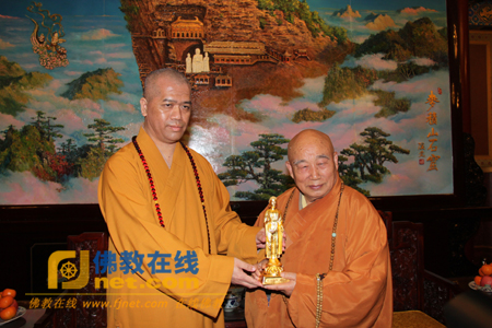 见灯法师代表中台禅寺向中国佛教协会赠送一尊金佛