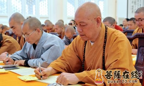 主讲能进法师在法会上抄经