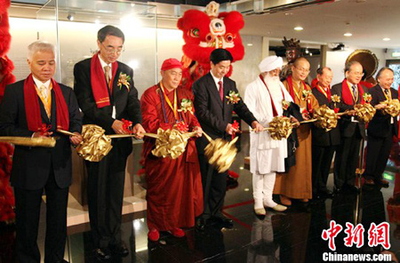 2011年11月9日,《智慧华严——北京首都博物馆佛教文物珍藏展》在台湾开幕。国家宗教事务局、中华宗教文化交流协会副会长张乐斌、台湾世界宗教博物馆创办人、灵鹫山开山心道法师,首都博物馆馆长郭小凌出席开幕式并剪彩。(文、图:陈立宇)