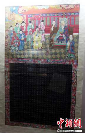 展出的明万历13年水陆画《水陆图缘起》