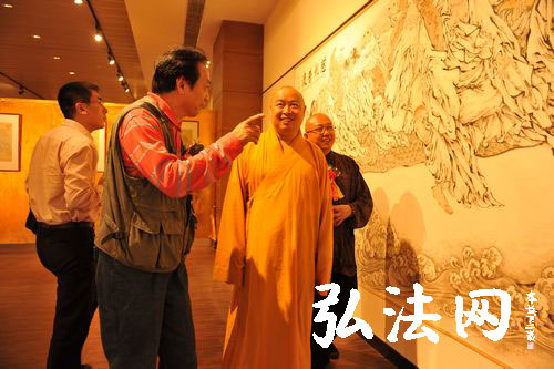 在剪彩仪式上,弘法寺方丈印顺大和尚做了讲话。他说,“很高兴在这里看到画家为我们展示的一个不同的世界。世界上的一切都是人创造的。画家天天画的是佛、菩萨、罗汉,想的也是佛、菩萨、罗汉。他内心呈现的是好的和快乐的,他通过艺术作品给我们带来的也是快乐和祥和。”印顺大和尚希望通过艺术家展示出的这个美好的世界,让大家通过对艺术作品的欣赏,与佛菩萨的心灵相应,当下就是净土,当下就是极乐,让每一个人都处在自在欢喜,淡定从容的世界里。