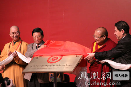 全国政协委员、中国佛教协会副会长、第十一世班禅额尔德尼大师为中心题写了藏文名称,这是班禅大师第一次为机构题名。(图片来源:凤凰网华人佛教 摄影:丹珍旺姆)